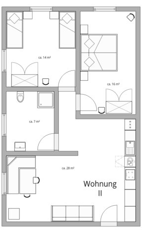 60 qm für bis zu 4 Personen